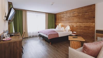 Rooms are available in modern or traditional alpine style, and all feature balconies, some with mountain views, flat-screen satellite TV, seating area, free Wi-Fi and soundproofing. Family rooms with separate living and sleeping areas are available for those who need extra space. The hotel is well set up for families of all ages, with a Sonne Mini Club offering childcare from age 2 in winter and age 4 in summer, up to six days a week including some evenings, giving parents genuine time to themselves.