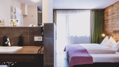 The Hotel Die Sonne is set in a quiet, sunny position on Altachweg between the villages of Saalbach and Hinterglemm. Saalbach village centre is approximately 900m away, and the ski school and ski hire shop are around 400m from the hotel. A bus stop is located at the door, and a downhill ski slope runs alongside the hotel in winter. A complimentary Super Sonne shuttle service operates throughout the day, connecting guests to the four main lift stations and the ski school.